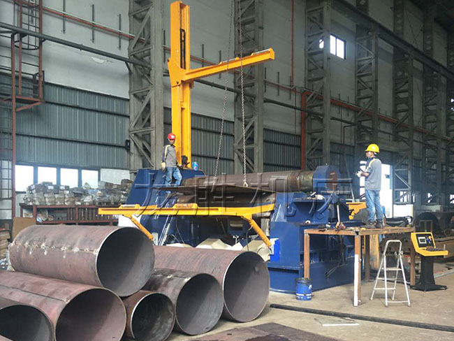該機優點是板材端部預彎及卷圓可以在同一臺設備上進行。
